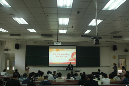 2021年11月12日中午,卫生管理学院党总支在番禺校区B1—101室召开了全体党员大会,选举产生出席校党代会的代表。本次大会由党总支委员李伯聪主持,共有102名师生党员出席大会,其中具有选举权的71名党员,符合应到会人数要求。