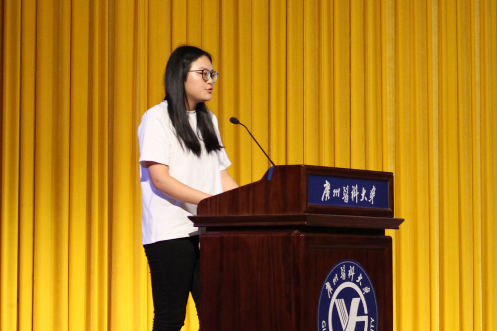 作为学生代表的2015级市场营销专业黄舒婷同学也分享了自己对本次教学审核评估的一些想法。她认为审核评估和每一位同学都息息相关,同学们不仅是评估的主体和对象,也是评估最直接的受益者,希望所有同学能正确看待本次审核评估。她倡议大家在学习上要更加勤思好问,遵守学习纪律;在生活上礼貌待人,注意营造良好的学习生活环境。