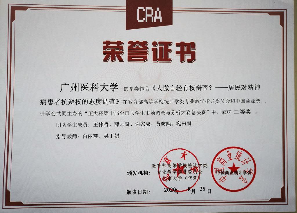 由教育部高等学校统计学类专业教学指导委员会、中国商业统计学会共同主办的全国大学生市场调查与分析大赛是面向海峡两岸高校大学生的一项公益性专业赛事,于2019年被中国高等教育学会列入学科竞赛A类赛事榜单。组织学生参加该项比赛,激发专业学生学习和研究的潜能,培养和加强学生团队协作意识、创新精神和实践能力,达到提高beat365市场营销专业人才培养质量的目的。