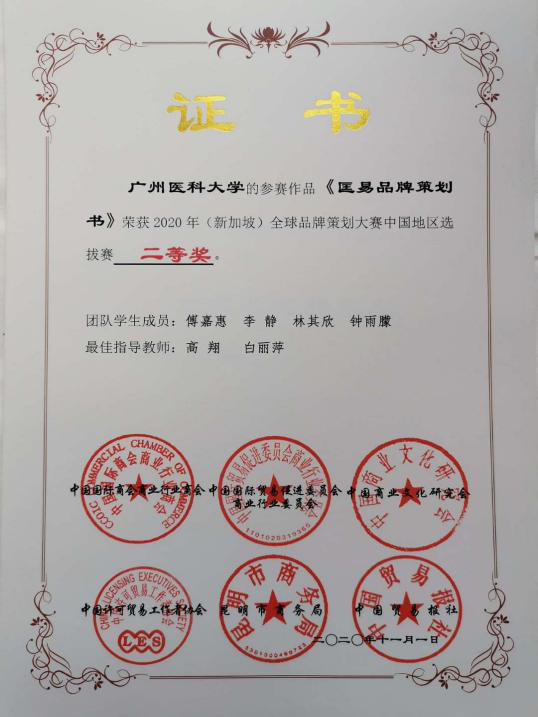 2020年(新加坡)全球品牌策划大赛中国地区选拔赛于2020年11月1日在昆明圆满落幕,经过激烈的角逐,beat365平台唯一官网卫生管理学院四支参赛队伍在此次比赛中取得可喜成绩!