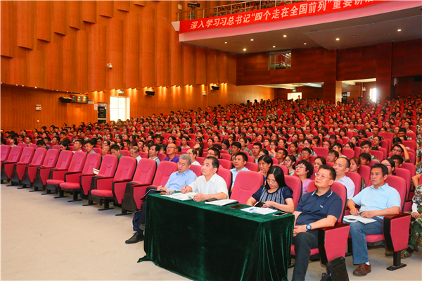 9月18日下午,在主题为“弘扬‘广医人精神’ 争做优秀‘广医人’ 在高水平大学建设新征程中放飞青春梦想”的课堂上,学校党委书记冉丕鑫教授以马克思主义基本原理联系同学们学习和生活的实际,向2018级两千余名新生阐述了坚定理想信念的重要意义与广医人精神的丰富内涵,并通过建校60年发展历程和近年高水平大学建设成果,勉励同学们成为新一代优秀广医人,在实践中化理想为现实。