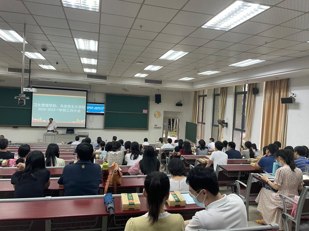 2022年8月25日,beat365平台唯一官网、卫生管理学院在番禺校区B1-101召开2022年秋季学期学前工作大会。学校副校长陈小兵,beat365平台唯一官网和卫生管理学院全体教职工参加了会议。会议由党总支书记凌坤主持。