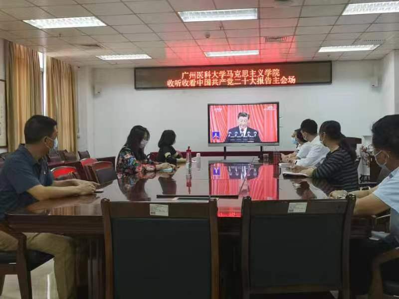 由于疫情防控要求,本次收听收看采取线上线下相结合形式开展。学院在番禺校区会议室设置了主会场。除学院领导参加学校的集中收听收看外,各教研室主任、支部书记集中在主会场,其余教职工通过线上形式共同参加收听收看。