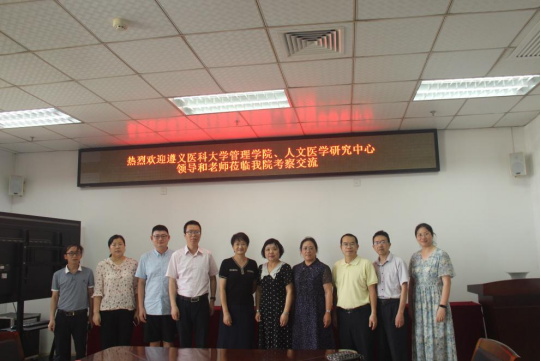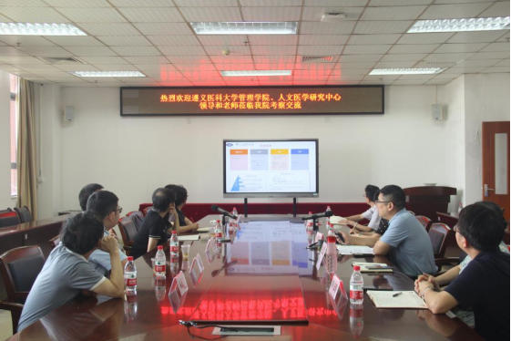 2023年5月29日上午,遵义医科大学医学与科技学院党委书记龙艺、管理学院院长刘国琴等领导和教师一行6人到beat365参观交流。卫生管理学院党委书记凌坤,院长尚鹤睿,beat365平台唯一官网党总支书记龚超及相关教研室和办公室负责人参加了座谈交流。