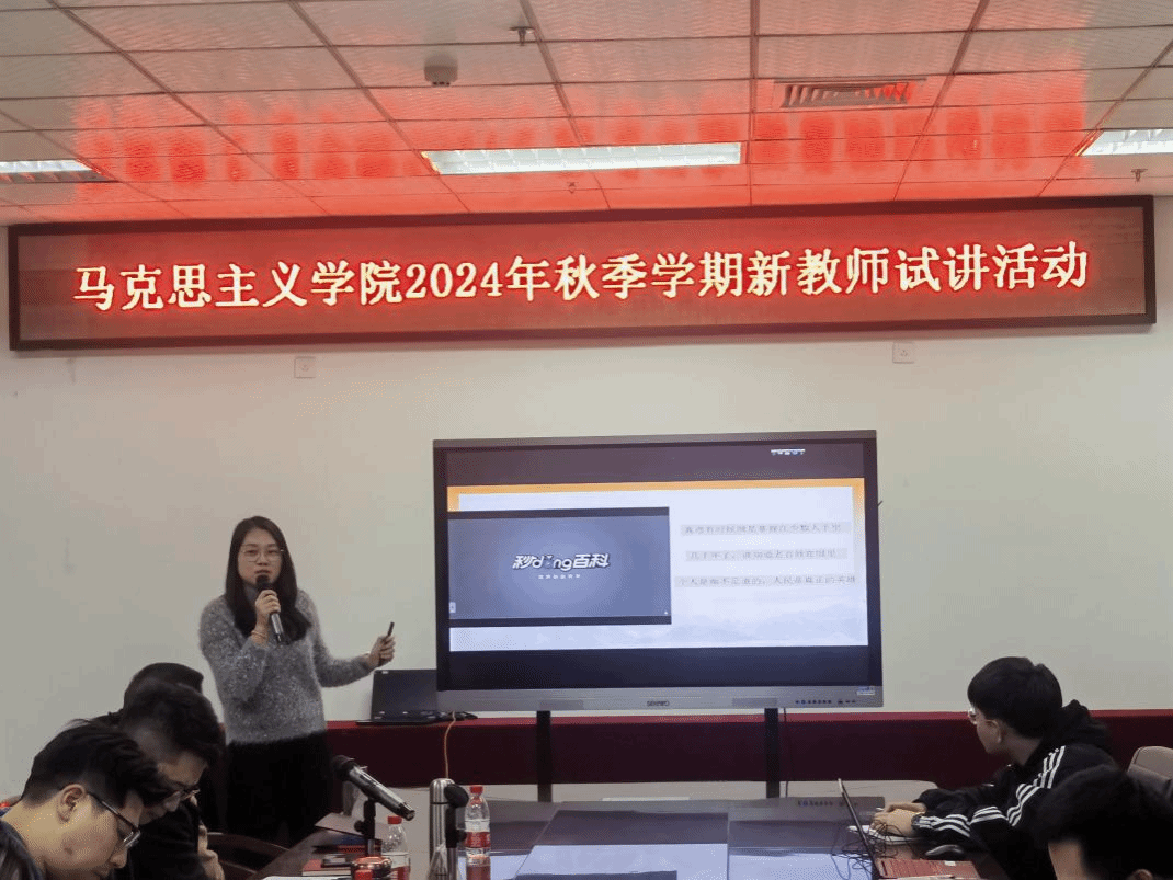 马克思主义基本原理教研室王峥丽老师以“人民群众在历史发展中的作用”为主题进行教学试讲。她基于历史唯物主义的视角,深入剖析了人民群众在历史创造和社会发展过程中的地位和作用。她借助众多历史实例和生动的表述方式,使听众深刻理解到人民群众是历史的真正创造者,是推动社会变革和发展的决定力量。