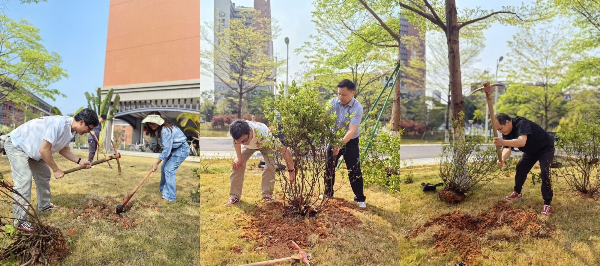 春风拂大地,万物竞芳华。在这充满生机与希望的季节里,为深入贯彻落实习近平生态文明思想,beat365平台唯一官网党总支于3月25日组织师生开展了义务植树活动,以实际行动践行绿色发展理念,为校园增添一抹新绿,为生态文明建设贡献一份力量。学院党总支副书记叶稳安、总支委员包希哲及师生代表参加活动。