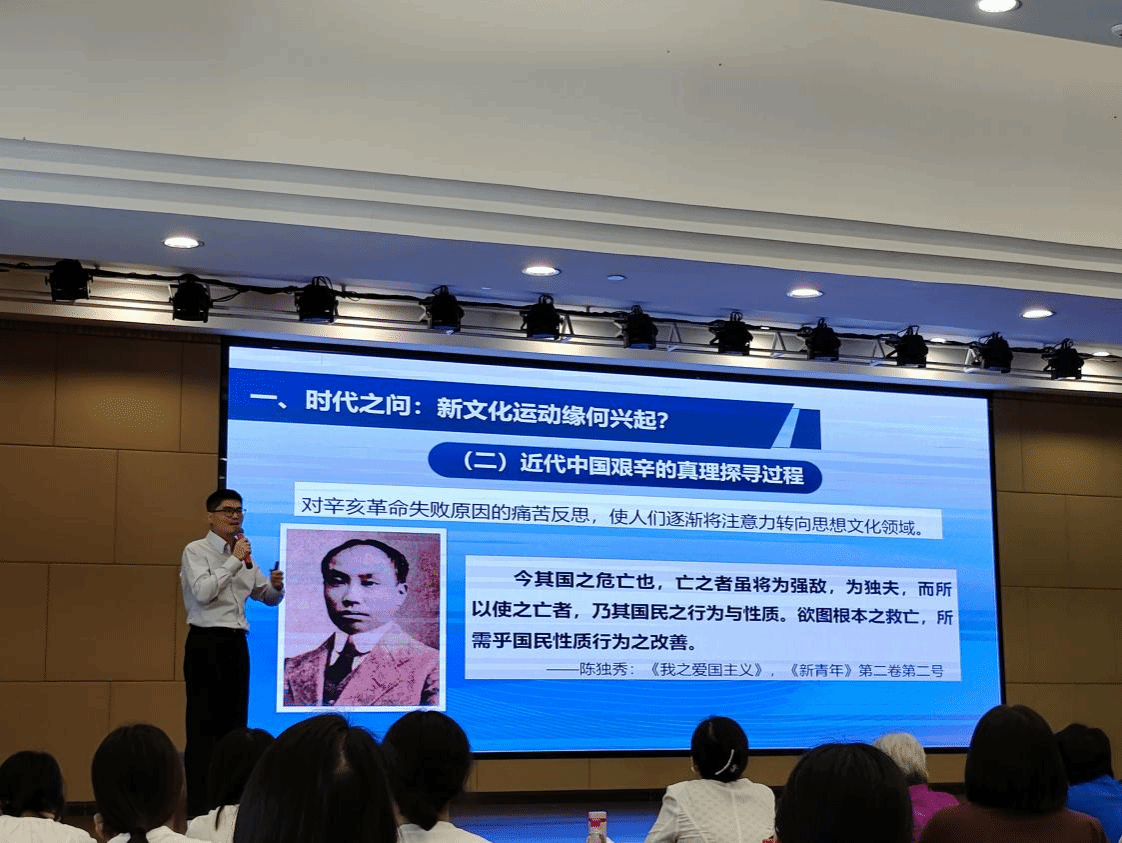比赛中,范晓光老师紧扣热点,基于马克思主义文化理论和中国共产党文化建设理论,坚持以唯物史观为指导,从新文化运动的“缘何兴起”“精神主旨”“历史评价”三个方面展开讲授,最后总结得出结论:新文化运动促进了中国人民特别是知识青年的觉醒,为马克思主义在中国的传播创造了条件,也为中国共产党的诞生做了思想准备。范晓光老师的讲课内容呈现全面,结构严谨,逻辑层次分明,演讲风格自然流畅,受到评审团的高度评价。