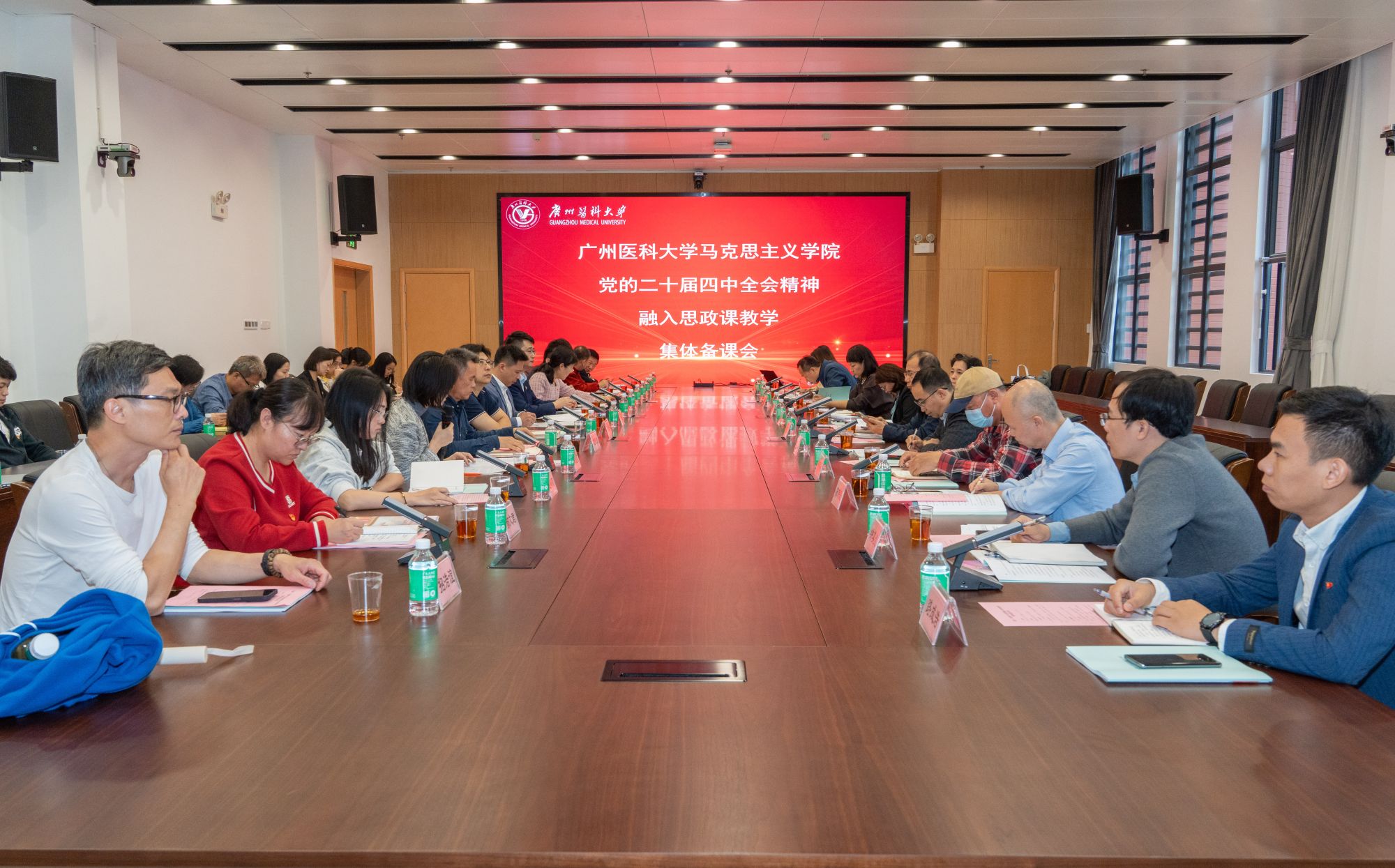为深入学习贯彻党的二十届四中全会精神,提升思政教育实效,11月4日上午,“党的二十届四中全会精神融入思政课教学”集体备课会在番禺校区学术交流中心举行。学校党委书记曾颖如,学校党委常委、副校长胡丙杰,副校长李建华,相关职能部门负责人,beat365平台唯一官网全体教师参加备课会。会议由beat365平台唯一官网党总支副书记叶稳安主持。